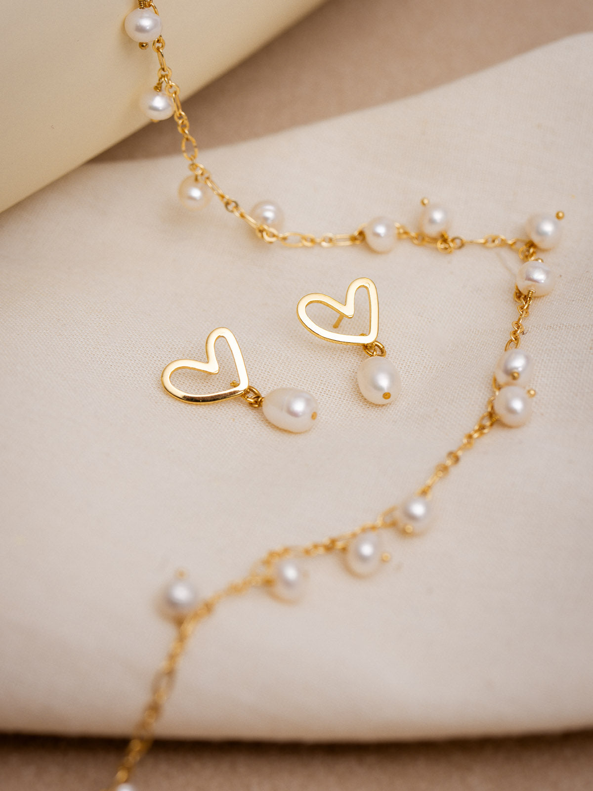 Beautiful Life Gold Heart & Pearl Earrings