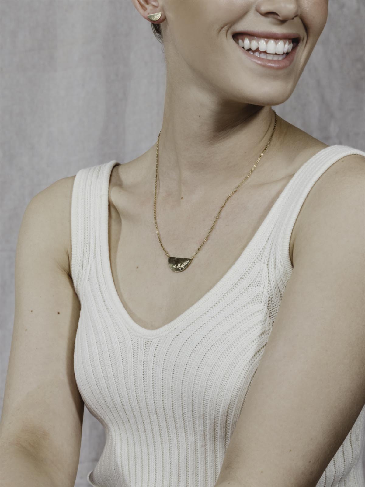 - 18K gold-plated stainless steel chain and semi-circle pendant with mustard seed engraving