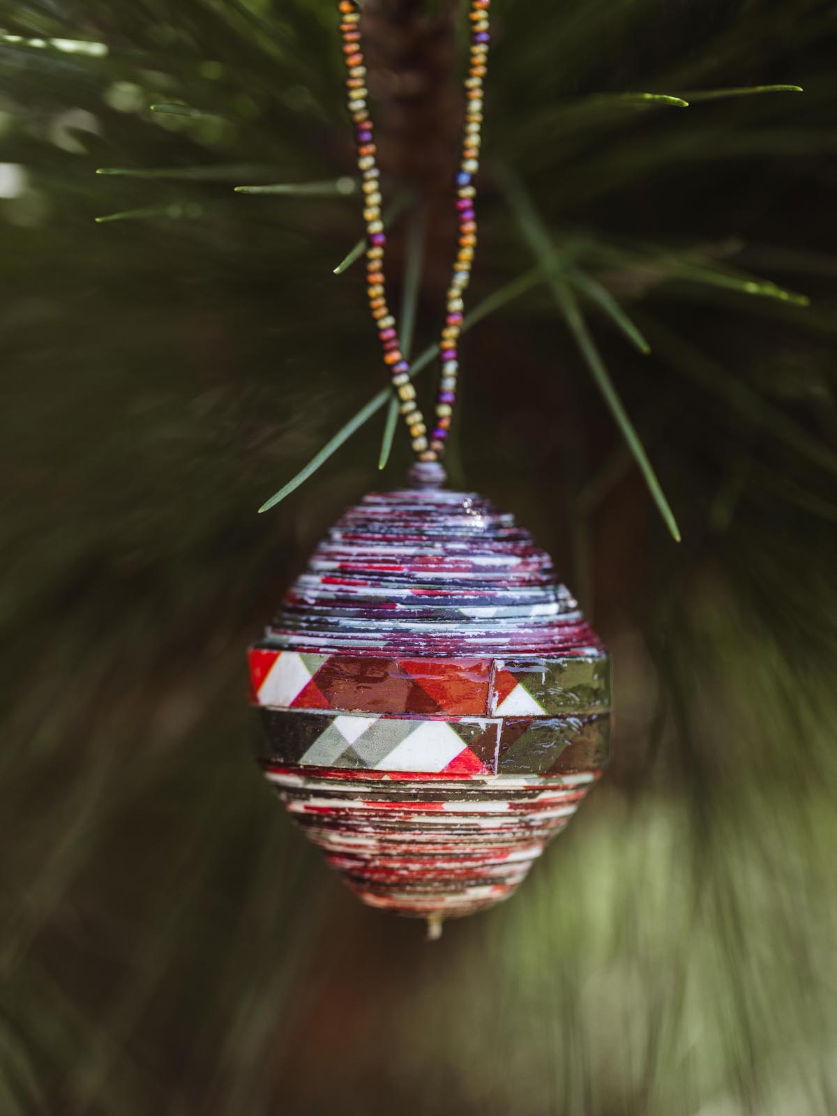 Plaid evokes countless Christmas memories, and this Christmas Plaid paper ornament from The Bead Project beautifully captures that nostalgic warmth. Handmade from classic red and green plaid paper, it brings a cozy, festive touch reminiscent of curling up by the fire with a plaid blanket and hot cocoa. This ornament radiates holiday cheer and embodies the spirit of a traditional Christmas celebration, making it a perfect addition to your festive decor.