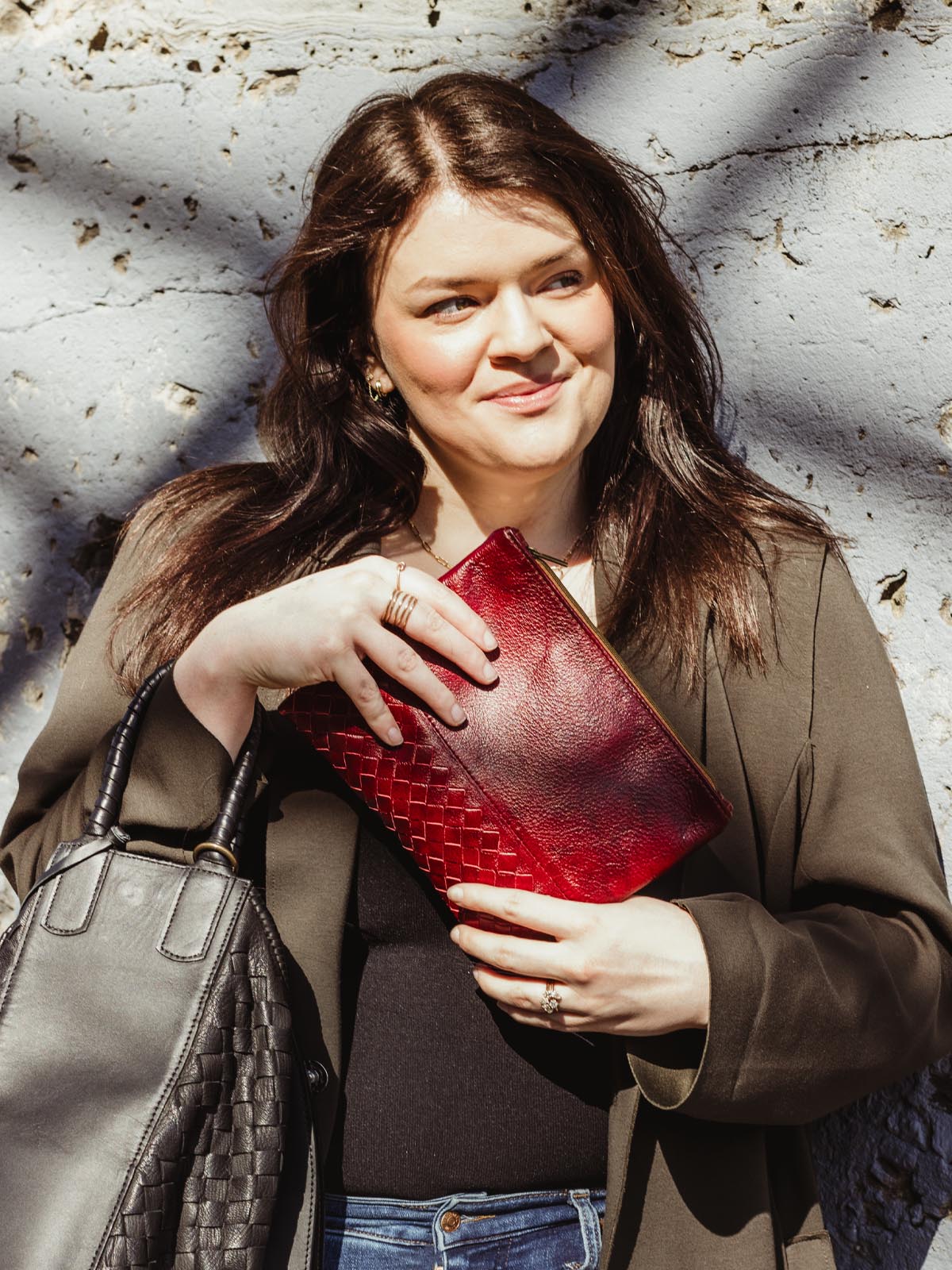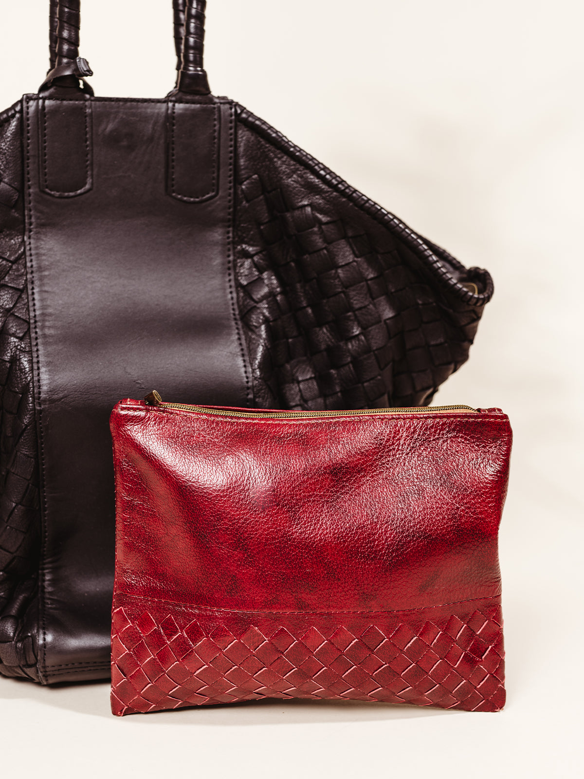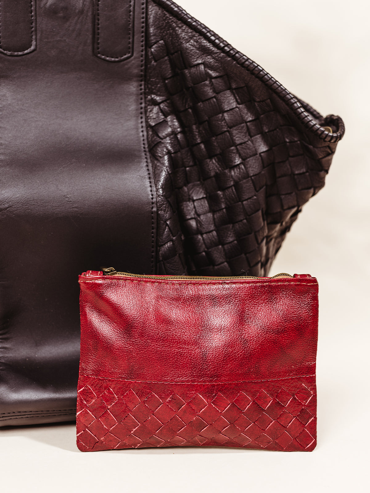 Your everyday essentials are elevated with the Leather Pouchette in Red. This versatile leather pouch is crafted from buttery-soft, top-grain leather and features lovely woven detailing. offering a luxurious feel and unmatched durability.  The compact size makes it perfect for carrying  makeup, toiletries, or any other small items you need to keep close at hand. Available in a stunning red color, this pouchette is a beautiful, functional accessory that will absolutely get better with time.